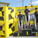 - Igen, sokkal izgalmasabb. A fordított rajtrács miatt a nyolcadik helyről indultam. A rajtom nem sikerült túl jól. Most ugyan jól láttam a lámpát, - nem úgy, mint az első futamon -, de olyan szélesen autóztak a többiek, hogy képtelenség volt megelőzni őket. Az ötödik helyre tudtam csak feljönni az első körben, innen Pistivel (Bernula) harcoltam a versenytáv felében. Sikerült ugyan megelőznöm, de hibáztam az egyik féktávon és Pisti azonnal visszavette a helyét. Ekkor kezdhettem a támadást előröl. Újabb körök vesztek el a számomra, mire átrágtam magam rajta. Ekkor már több mint 100 méter lemaradásom volt a versenyt vezető hármastól, amit kopott gumik miatt a határon autózva sikerült csak ledolgoznom. Mátét utolérve újra kezdődött minden. Ő már eredményesen védekezett, egyszer össze is mentünk. Végül csak azért állhattam a dobogó harmadik fokára, mert Máté két másodperces büntetést kapott a négykerekes pályaelhagyásai miatt. Harcos menet volt.